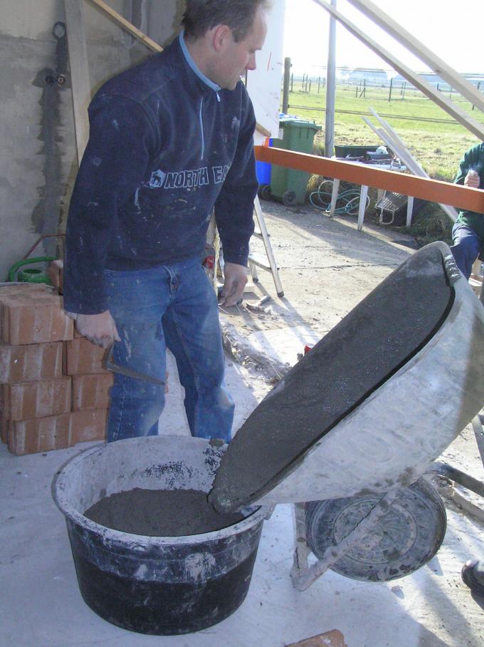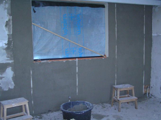 Na ruim een week is de muur hard genoeg om af te werken. Wytske wordt inmiddels ook handig in het stucwerk.