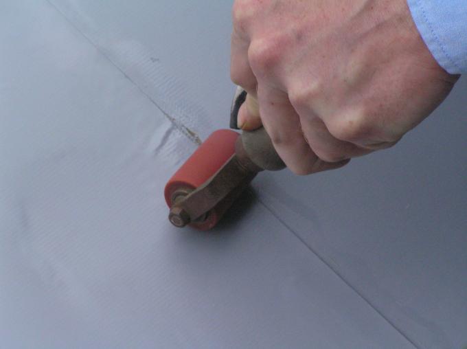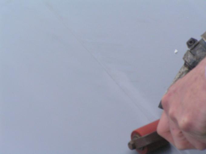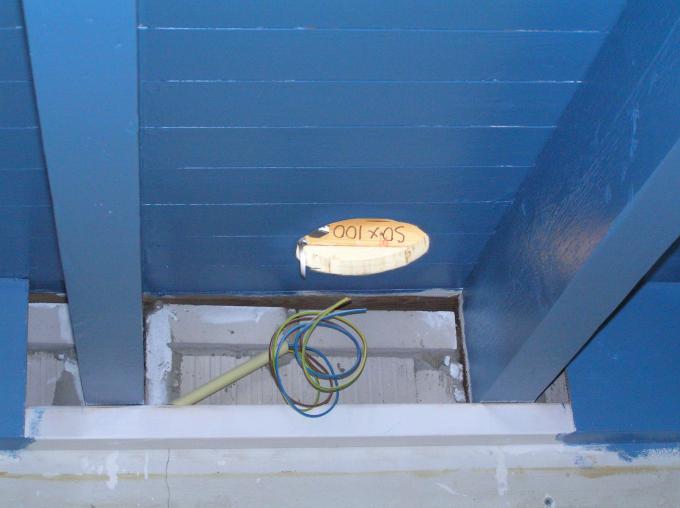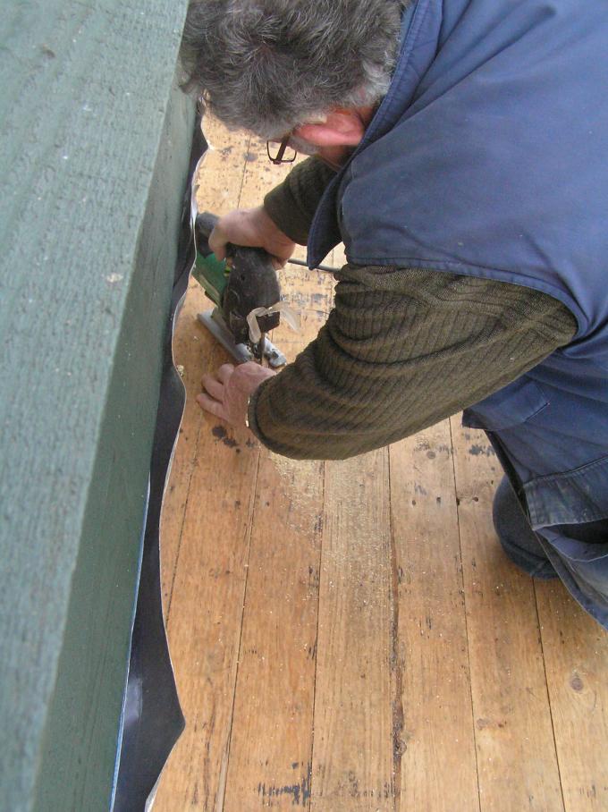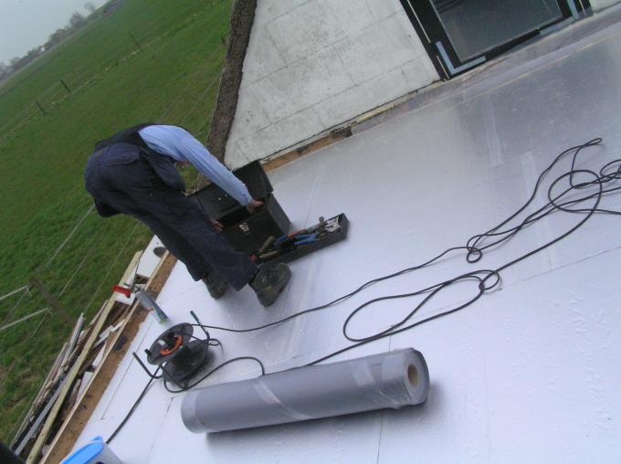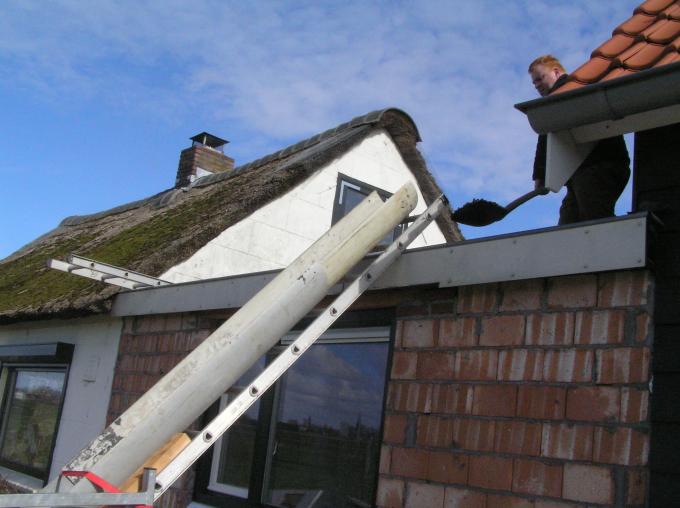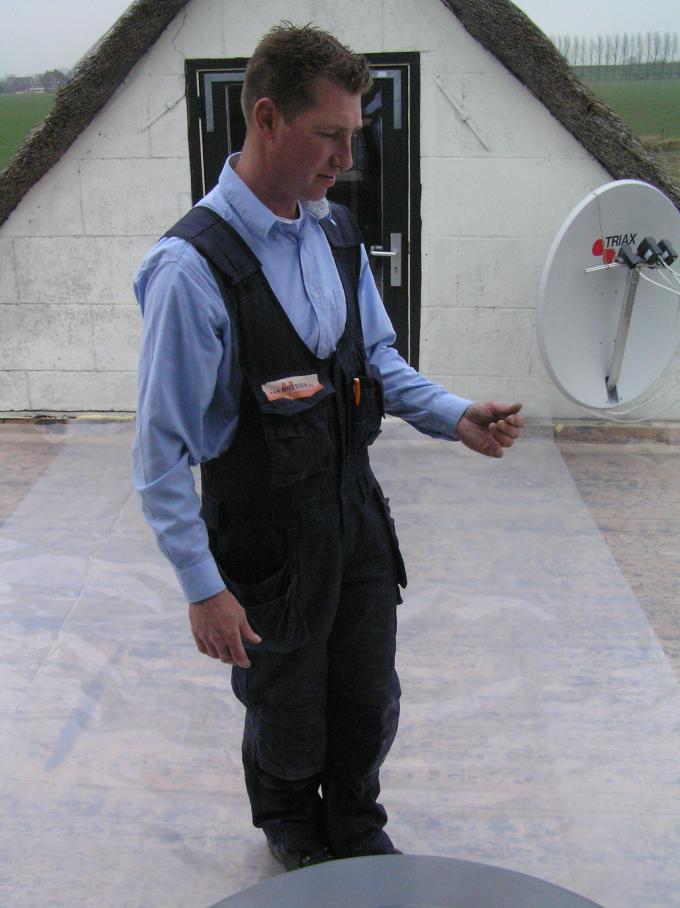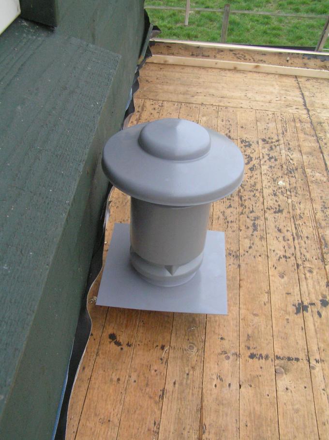 Er wordt een gat in het dak gemaakt voor de afvoer van de afzuigkap.