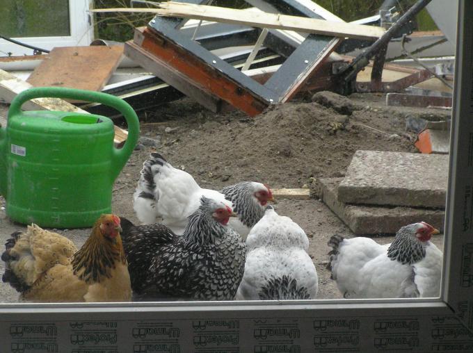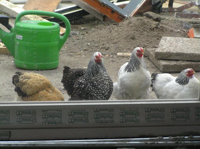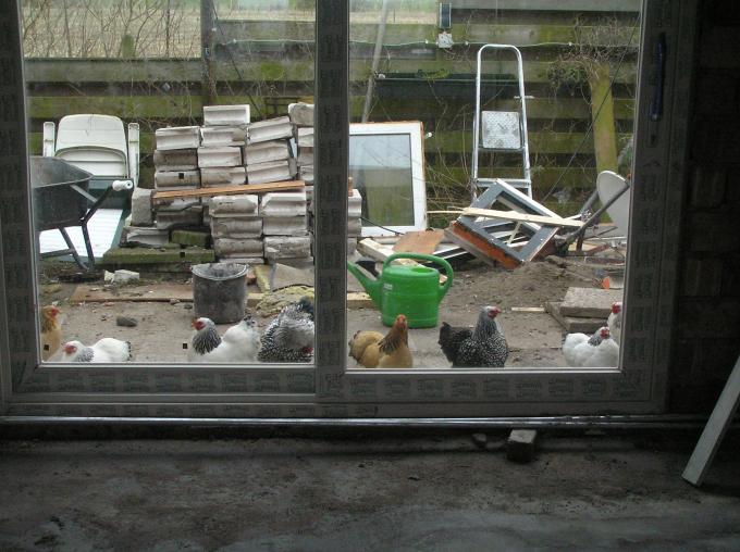 De kipjes zijn helemaal gek met de schuifpui.