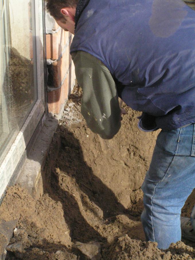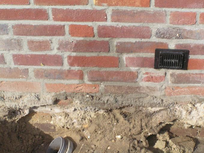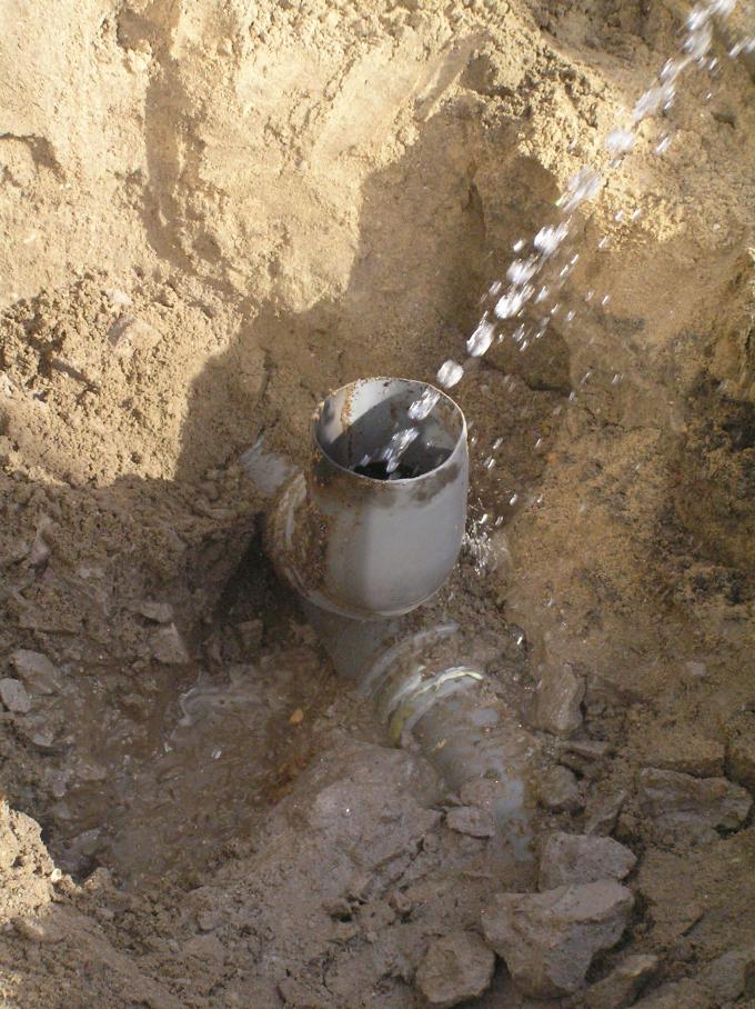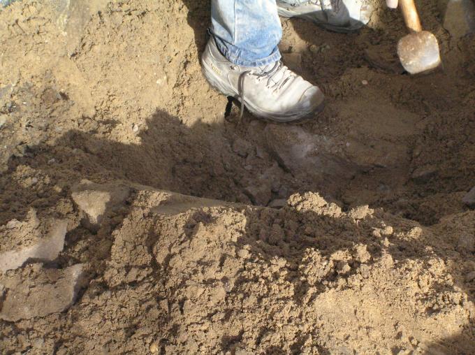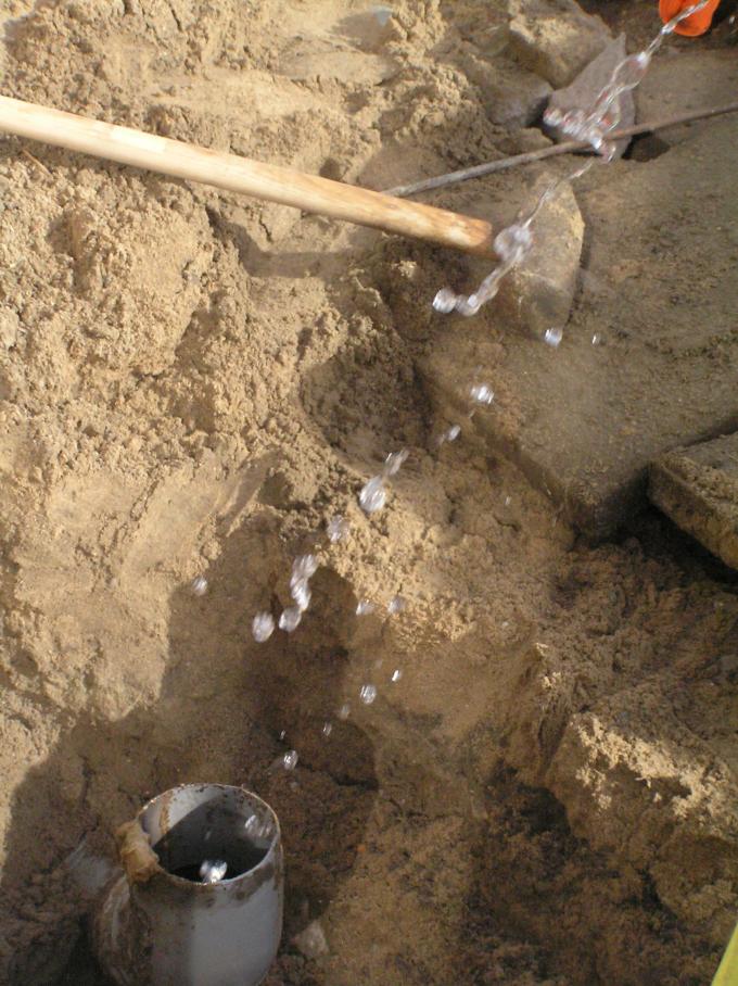 Het riool is verstopt. De aannemer haalt de boel open.