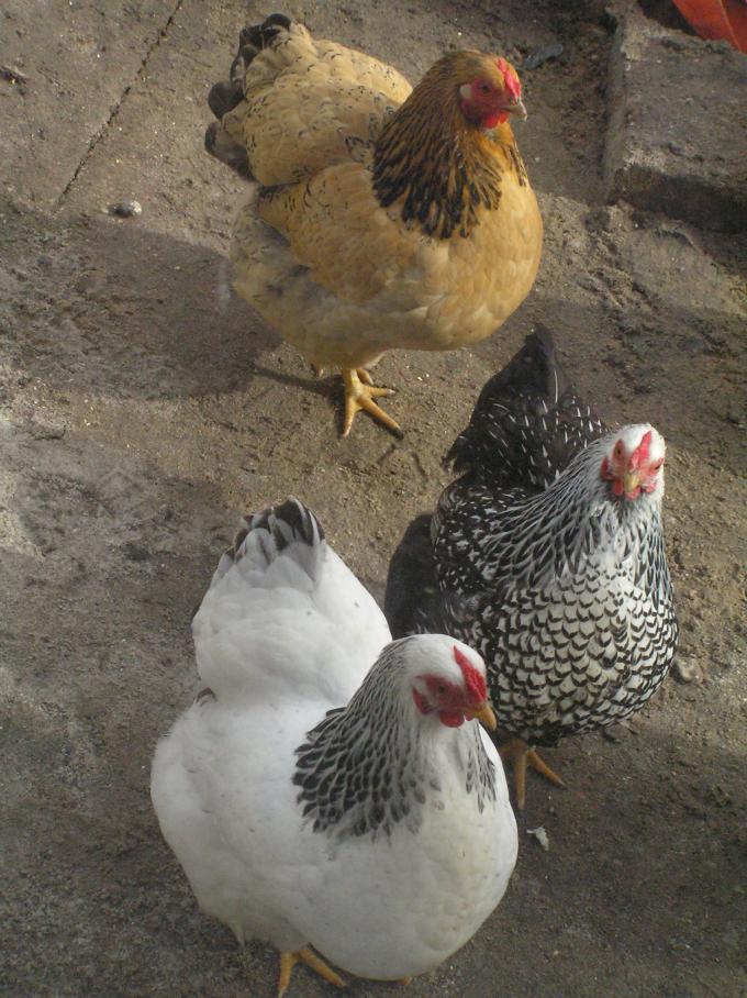 De kippen graven mee.