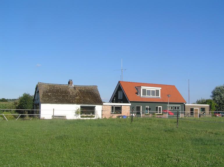 De nieuwbouw staat op de plaats waar voorheen een varkensstal was. Deze stal is in 1960 gebouwd en heeft jarenlang onderdak geboden aan het vee. Later zijn de hokken er weer uitgehaald en is het veranderd in bergruimte. Toen wij het huis kochten, bleek de stal in een dermate slechte staat dat hier niet veel mee te doen viel. In 2007, vrijwel direct na de watersnood, is de stal gesloopt en hebben we hier de nieuwbouw neergezet. In de nieuwbouw zit de hal, WC, badkamer, atelier en slaapkamer.