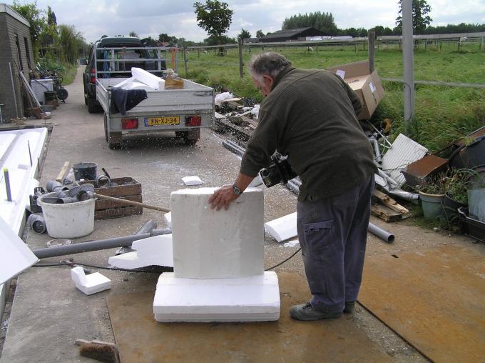 Piepschuim zaag je natuurlijk met een kettingzaag.