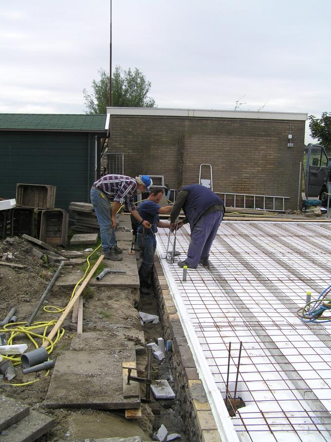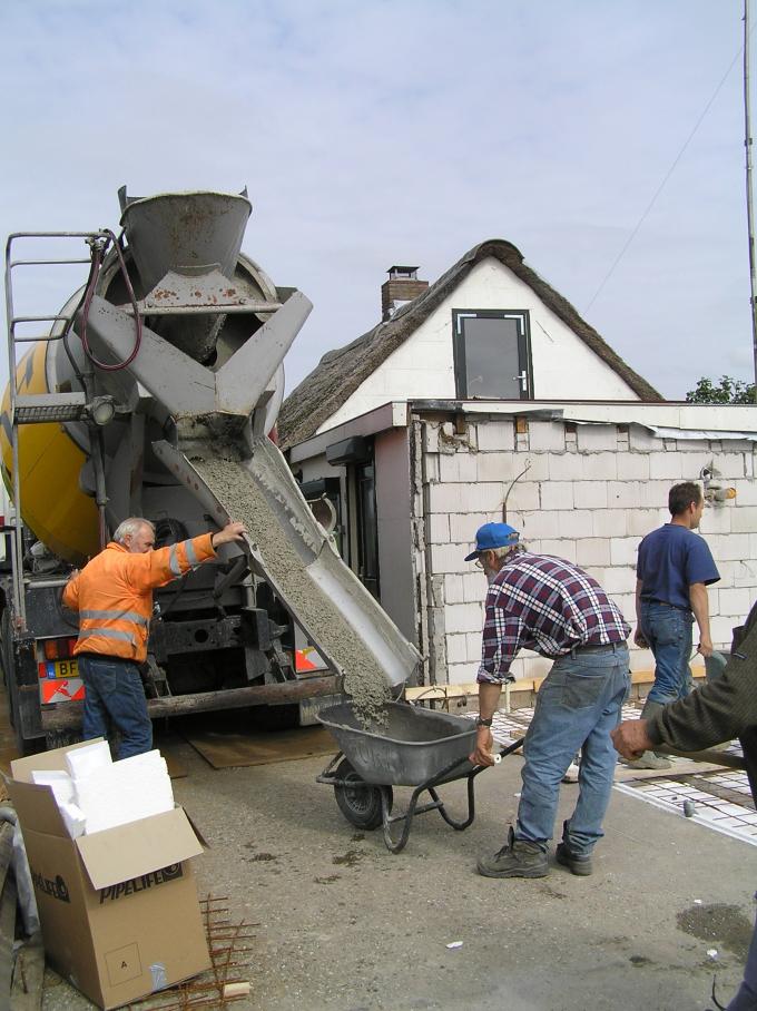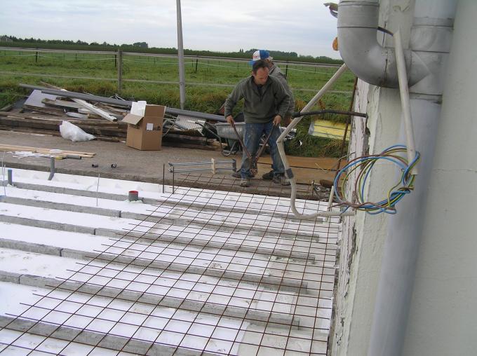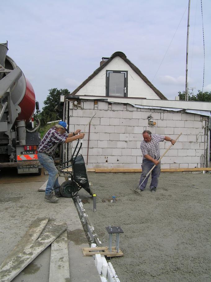 Met een speciaal elektrisch trilding wordt de vloer vlak gemaakt. |