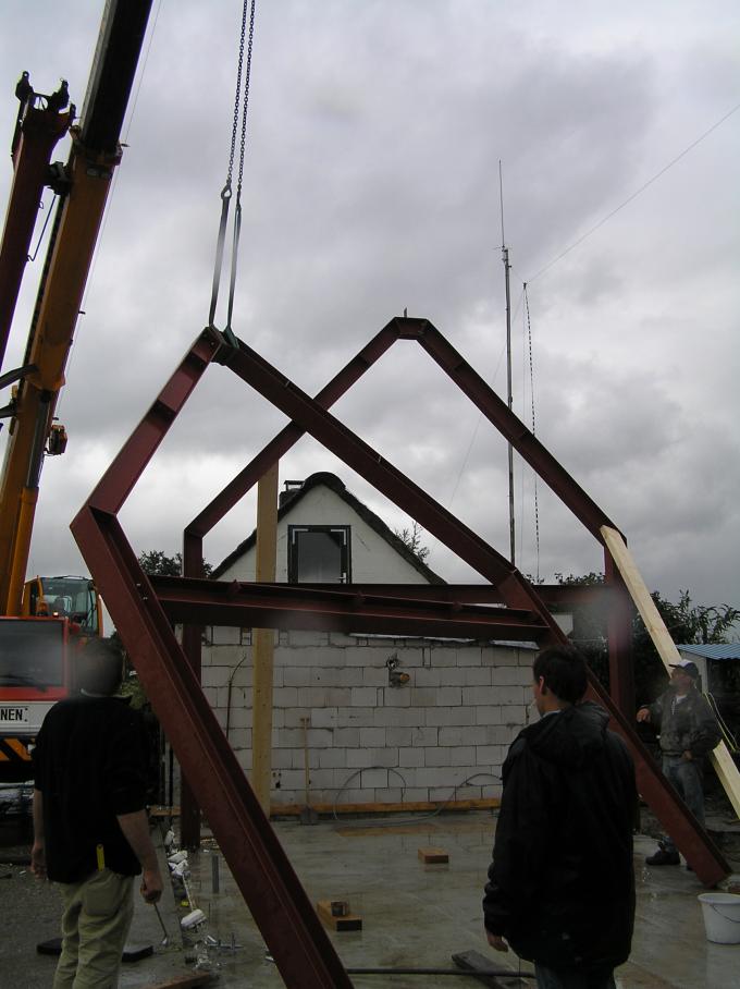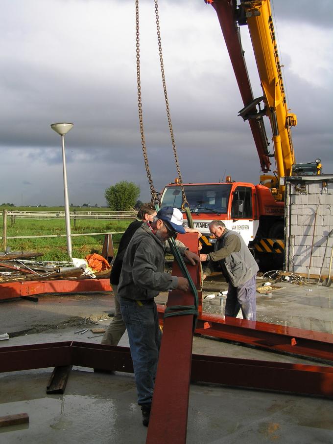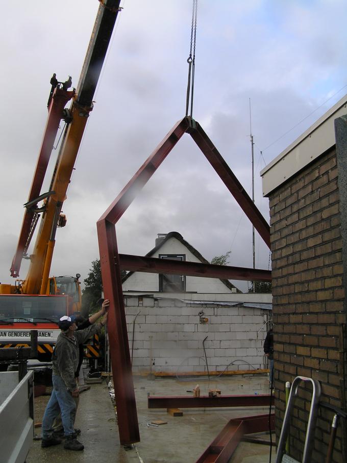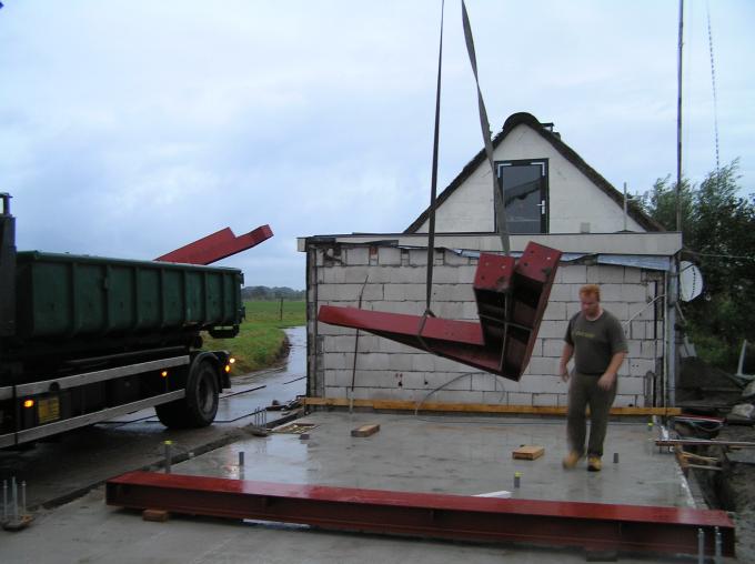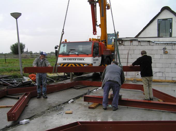 Op maandagavond 17 september werden de metalen spanten gebracht.