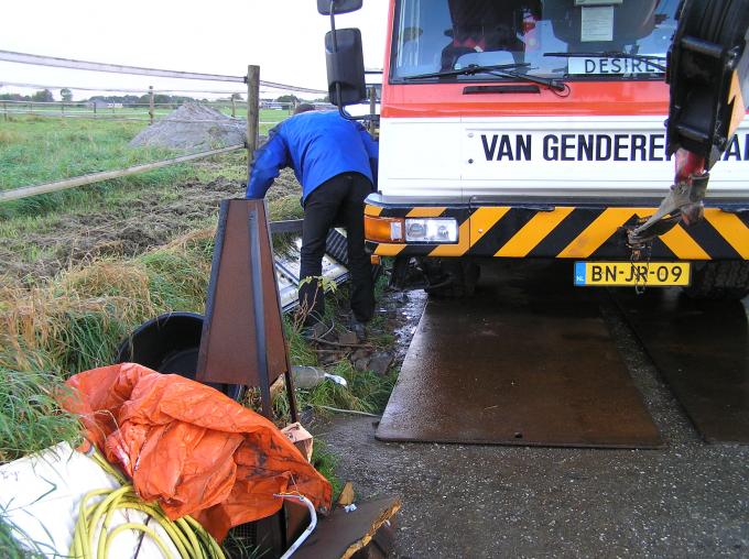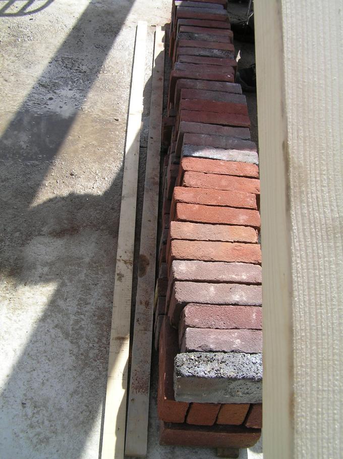 Dit zijn de stenen waarmee ze de eerste meter gaan metselen. De rest wordt hout. |