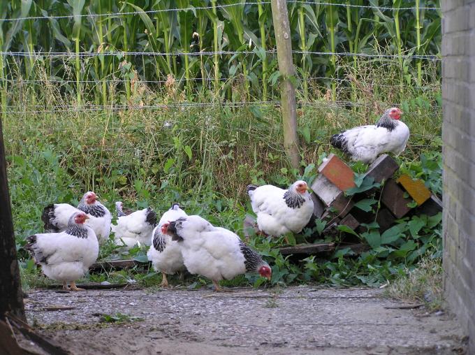 Al snel liepen de kippen rond het hele huis, in het maisveld, in de paardenwei van de buren, enz. Ondertussen kwamen ook de eerste eitjes er.