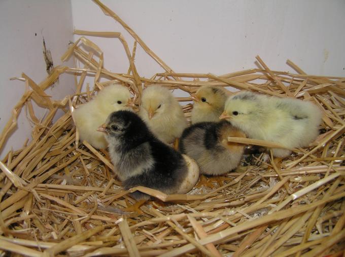 Onze eerste kipjes. Op de hoogste plek zit een nog hele jonge Hendrik.