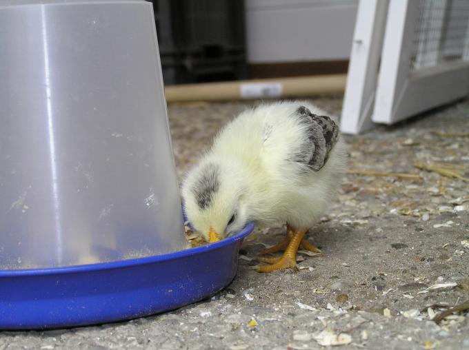 Het eerste nest: 6 kuikens. Met op de voorgrond Zwartje.