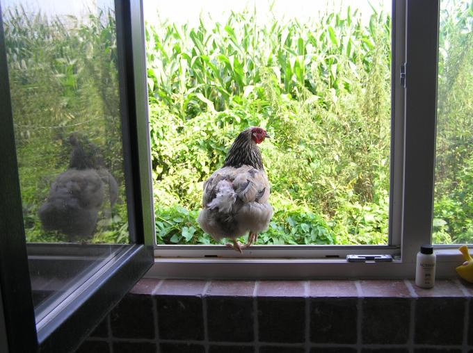 De kippen komen helaas graag binnen, want daar zijn nog wel eens kattebrokjes te vinden...