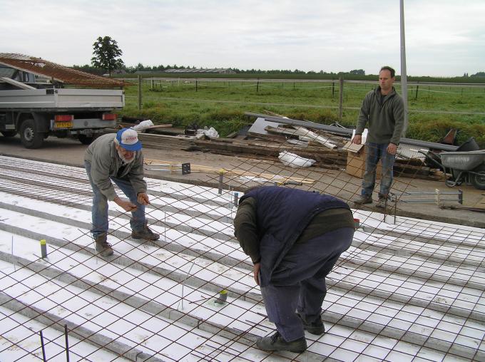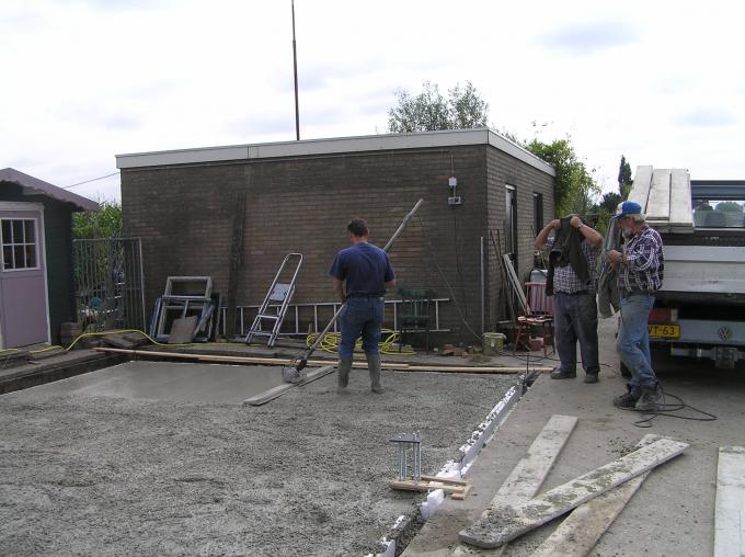 Met een speciaal elektrisch trilding wordt de vloer vlak gemaakt. |