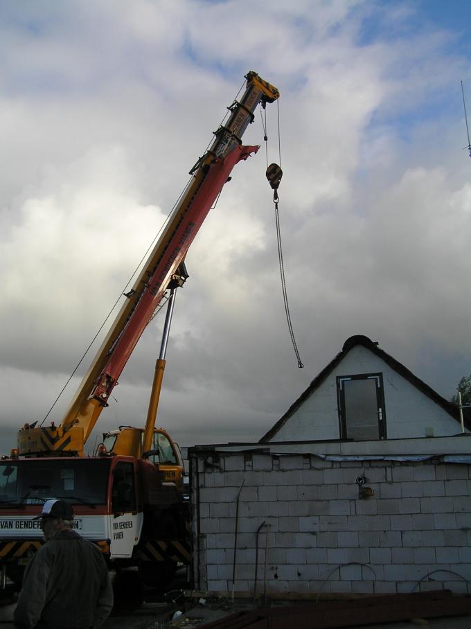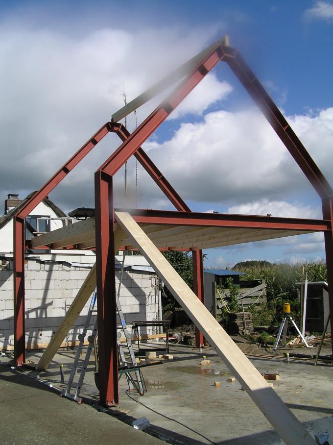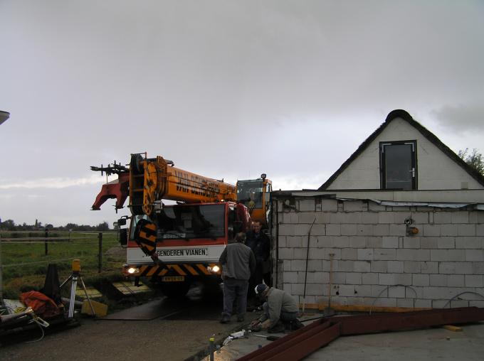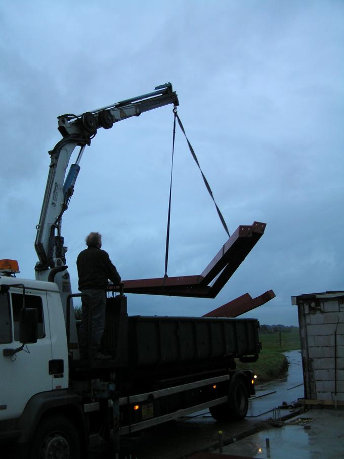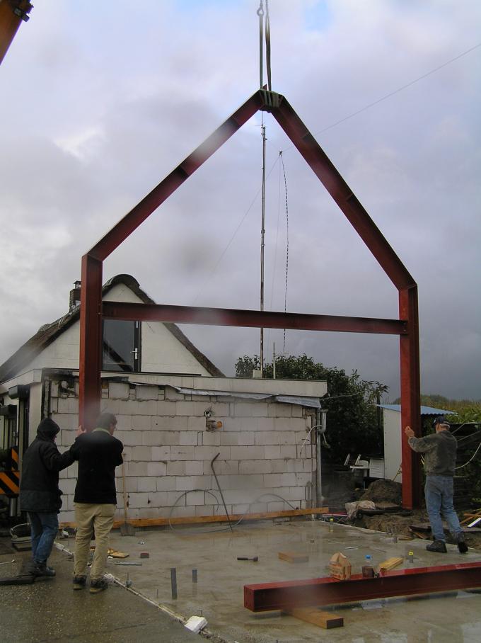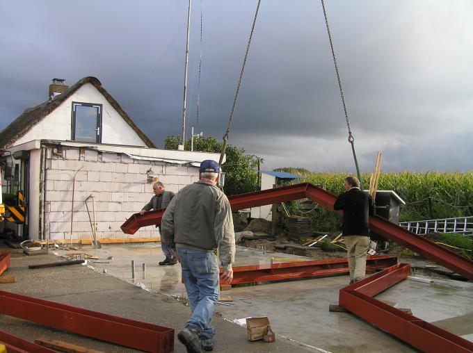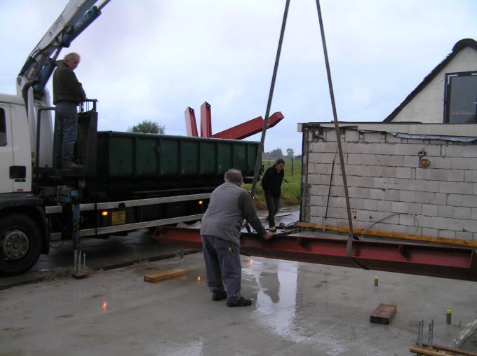Op maandagavond 17 september werden de metalen spanten gebracht.
