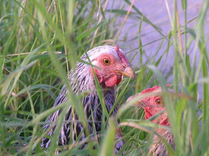 Maar toen kwam de eerste tegenvaller: een vos was door het inmiddels hoge mais gekomen en had de kippen ontdekt. Toen we het ontdekten, was het kwaad al geschied: slechts 2 hennen (die zaten op het nest) en de haan waren nog over. Later die dag kwam er nog een hen terug uit de mais, en een aantal dagen later vonden we bij een knotwilg bij een buurman nog een hen terug. De vos had dus twee hennen gepakt. Niet leuk, maar ja, dat is het risico als je ze rond laat lopen.